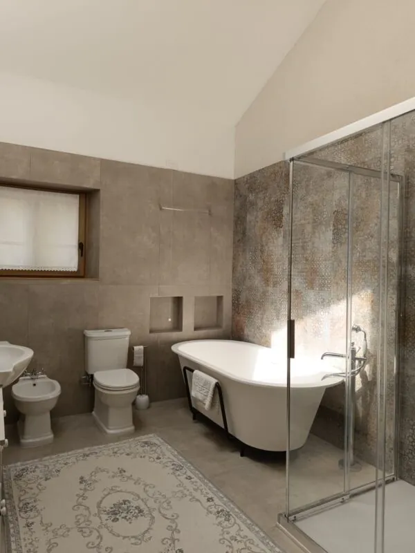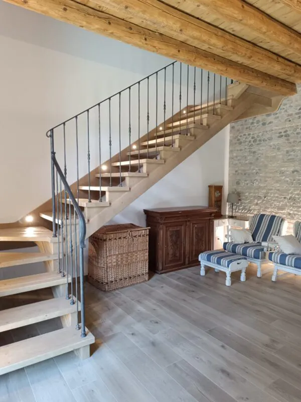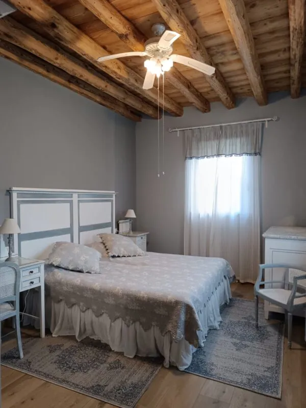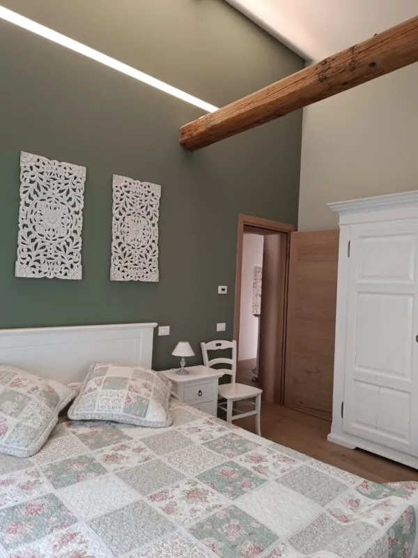 Appena ristrutturata, accoglie gli ospiti in ambienti confortevoli e raffinati, caratterizzati da travi a vista, pietra naturale e arredi dal gusto delicatamente romantico. Gli spazi raccontano una storia di eleganza rurale: la scala in legno e ferro battuto, i dettagli artigianali e le tonalità calde creano un’atmosfera intima e rilassante, ideale per lasciarsi alle spalle il ritmo frenetico quotidiano.