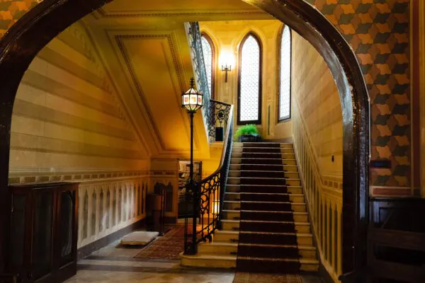L’imponente mole dell’edificio colpisce da subito l’occhio dell’osservatore, mentre le alte torri merlate con finestre a bow-window, i camini mascherati da pinnacoli e le bifore archiacute, danno l’impressione di trovarsi nel periodo medievale. Si potrà visitare il foyer e l’androne, l’enoteca, il piano nobile e le camere del secondo piano, scoprendo lo stile neo gotico inglese che contraddistingue questa villa. Si completa la visita con la scoperta autonoma del Parco Storico di 12 ettari, anche con l’utilizzo di alcune biciclette e di una barchetta a remi.